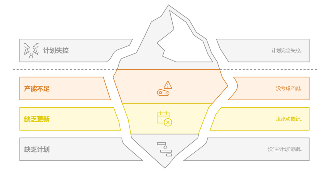 • 设“计划滚动窗口”:比如以6周为周期,滚动更新前4周计划;