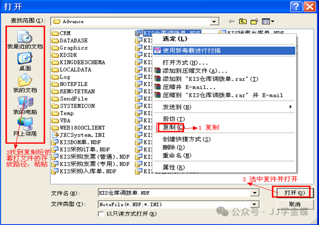 点击“文件 - 打开”(这个时候,你能看到 kis 专业版安装路径下的所有单据的默认套打模版,如果没有特殊要求的,可以使用默认模版),右键单击选中 kis 销售出库单,复制并粘贴到你以后套打文件的存放路径,我这里放在桌面。然后选中桌面的 kis 销售出库单,点击打开。