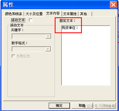 1. 双击固定文本“购货单位”,出现如下左图,里面的内容可以自己键入,打印出来的内容就是你键入的内容。