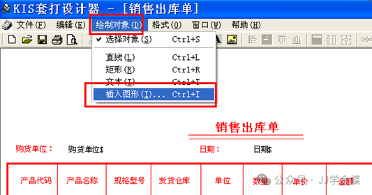 在套打设计器里“绘制对象 - 插入图形”,选择一个图形文件(注意文件格式只能是.bmp 或者是.ico)。