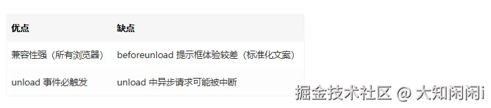 方法二:beforeunload 与 unload 事件 —— 传统的页面卸载监听