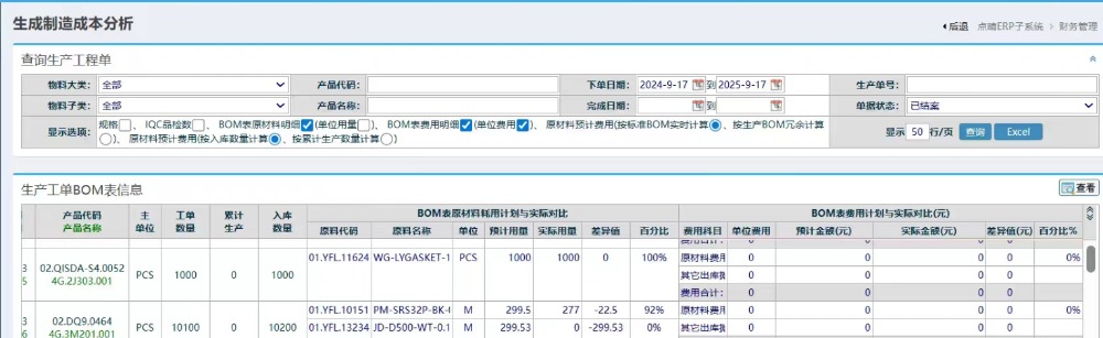 点晴模切ERP财务成本分析对应字段数值来源说明