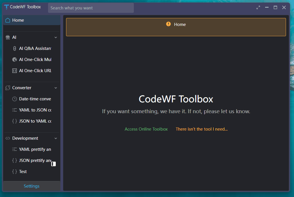 同时,包含实用的 Json 美化工具和 YAML 转 Json 工具,分别如下图所示: