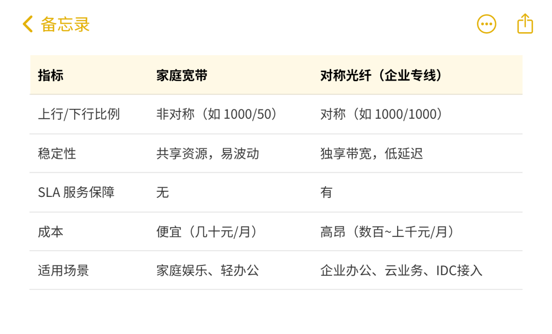 但随着 XGS-PON 普及,一些城市的家庭宽带也开始试点“上下行对称套餐”,价格比企业专线低得多。
