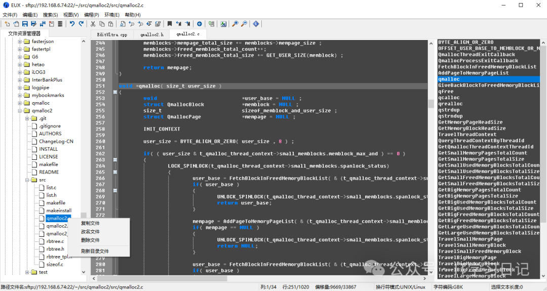 • SFTP 远程访问:通过 SFTP 协议远程打开文件,并支持远程文件/目录的创建、改名与删除